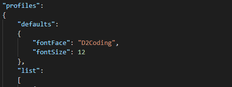 | 1. 위 네이버 블로그 링크 클릭 후 github 링크까지 클릭 1.1. 또는 github 링크 : https://github.com/naver/d2codingfont/releases 클릭 2. 최신버젼 다운로드 3. 압축 풀기 4. 마지막 파일 우클릭 // 파일명 : D2Coding-Ver1.3.2-20180524 5. 설치 6. Window PowerShell 상단 아래화살표 클릭 7. 설정 클릭 8. 좌측 하단 톱니바퀴 클릭 // setting.json 파일을 엽니다. 9. profiles 찾아 아래 스크린 샷과 같이 수정 후 저장 ![]() ※ 폰트 사이즈는 조절 가능 |